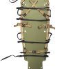Description The Rapid Extraction Sked Stretchers are designed for increased safety and speed of packaging and extraction of patients from the battlefield and other environments. They are lighter weight and have a harness included for greater safety and to keep the patient properly positioned in the litter. The Horizontal lift slings are the same as the previous models except that they are both the same length. In the manner they are used they break at 18,000 pounds and there are two of them. The vertical lift sling is incorporated into the attached harness thus eliminating the rope used in previous models of the Sked. This saves a lot of time as they are always connected and ready for use. Rather than weaving a rope through the grommets and remembering how to tie the knots, all you do is release the screw link at the head end and clip it into the helicopter winch hook or the rope rescue haul system. The harness is very unique too. The vertical webbing is woven through the Sked cross strap eyes and are connected at the top with a triangular screw link that is rated at 5,000 pounds minimum break strength. The straps are connected at the lower end by a Cobra buckle that is used in many brands of rescue harnesses. At the lower end of the harness are adjustable leg loops that are secured around the patient’s upper leg in order to lift his weight. They are sewn to the vertical harness webbing at the side of the Sked. In case of an amputation you just use one leg loop around the existing leg. If both legs are amputated the leg straps are buckled to each other to form a loop around the patient’s lower torso which will keep him positioned in the upper part of the Sked which makes it far easier to handle the Sked. This configuration of the leg straps also makes it possible to form an improvised junctional tourniquet which will aid in controlling bleeding. At the top end of the harness there is an attached chest harness to keep the patient from sliding out in case the Sked somehow gets inverted. It is crossed across the patient’s arms and shoulders and will form an X over the chest for maximum safety. The full size R.E. Sked is 28 inches wide at the torso area and tapers toward the foot end to provide excellent patient access without opening the Sked. The vertical straps of the harness are passed from the inside out through beefy #7 grommets and the screw link at the head end is secured to the center grommet at the top end of the Sked on the outside. This will keep it from not being dragged on the ground when not in use. When hoisting the Sked in the vertical position you simply release the retainer bar from the grommet and clip the screw link into a winch hook of rope rescue haul system. Prior to hoisting in the vertical position it is necessary to grasp the drag handle of the Sked and pull the head end of the Sked up so it is curled over the patient’s head for added safety in case the Sked gets inverted and to protect the patient from small falling objects. Safety and attention to detail is always paramount. See instructions.